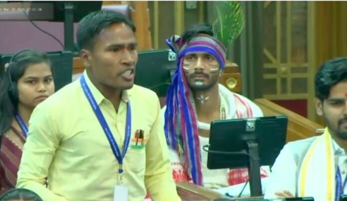 नियामत अली सकलडीहा पीजी कॉलेज का छात्र विधान सभा में भाषण देते हुए