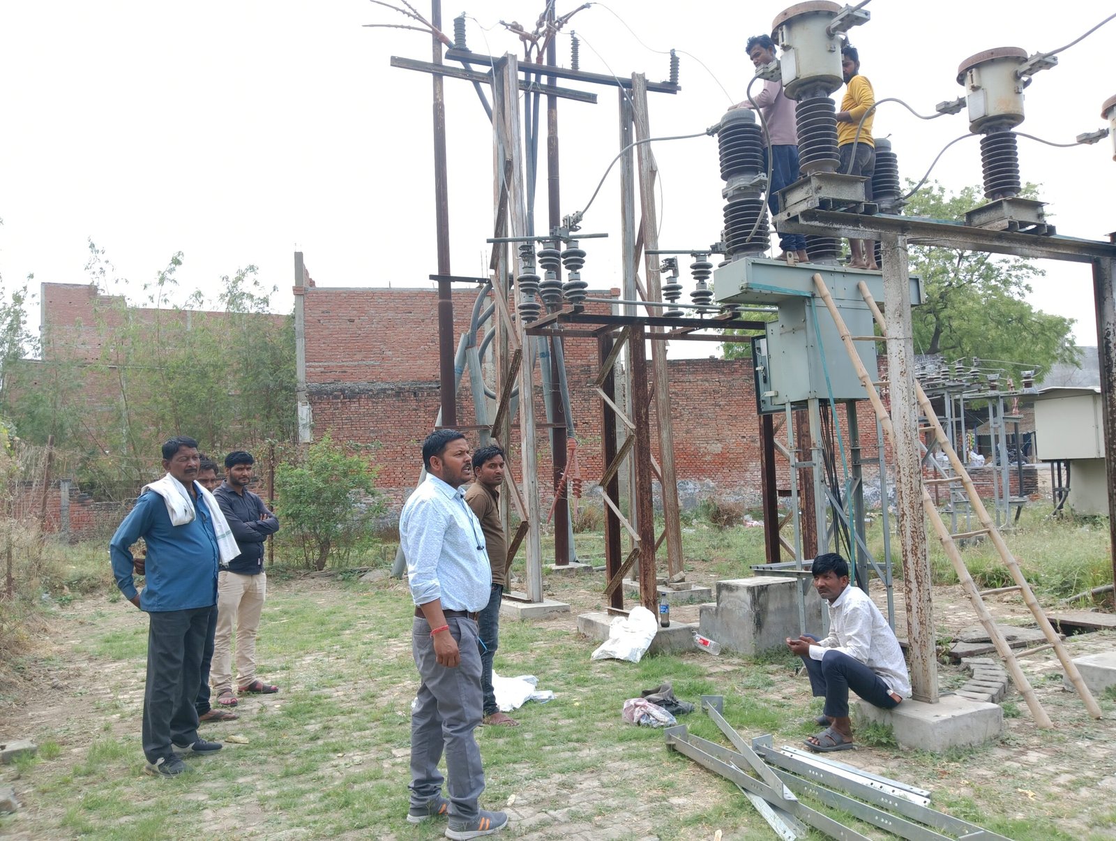 गर्मी में ट्रांसफार्मर के हिट होकर जल जाने से बचाने के लिये लगाया जा रहा ब्रेकर