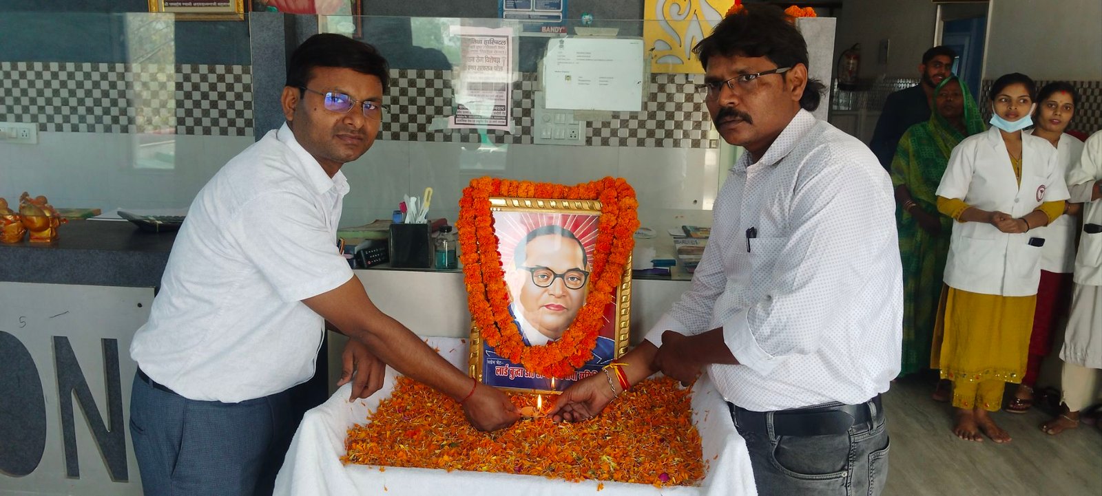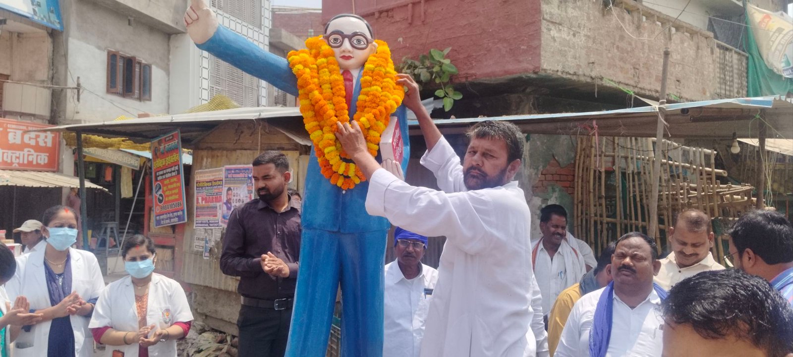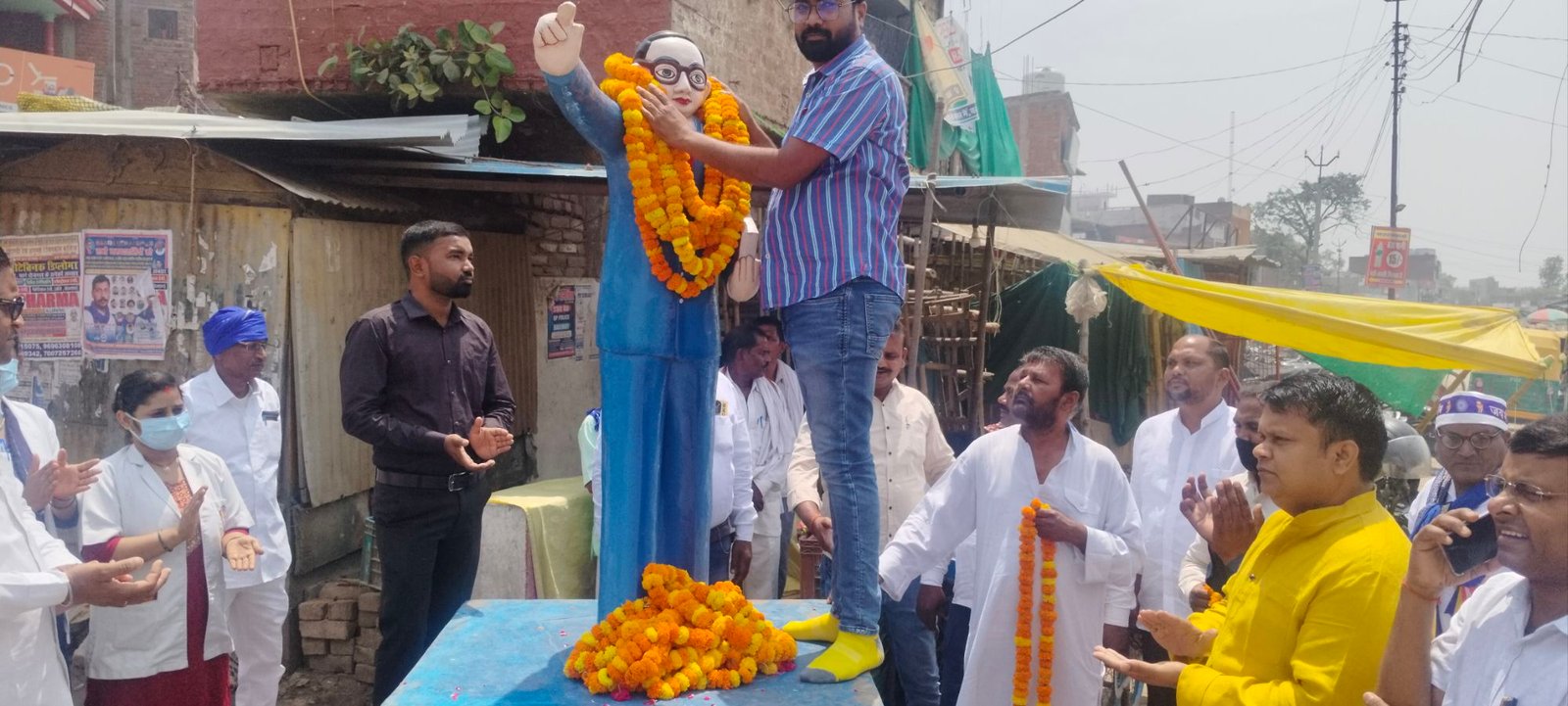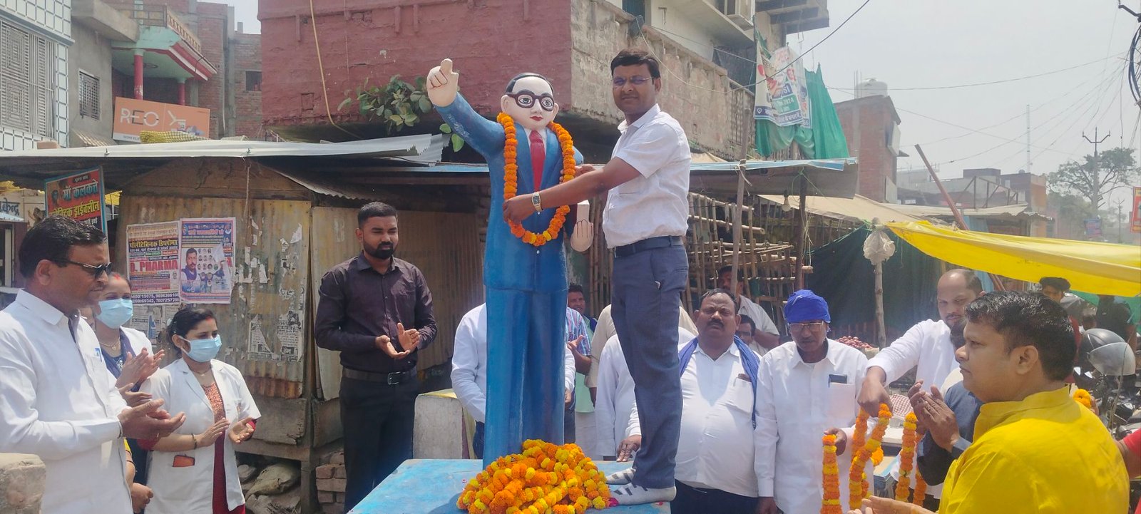 बाबा साहब के मूर्ति पर माल्यपर्ण करते हुए विभिन्न समाज के लोग