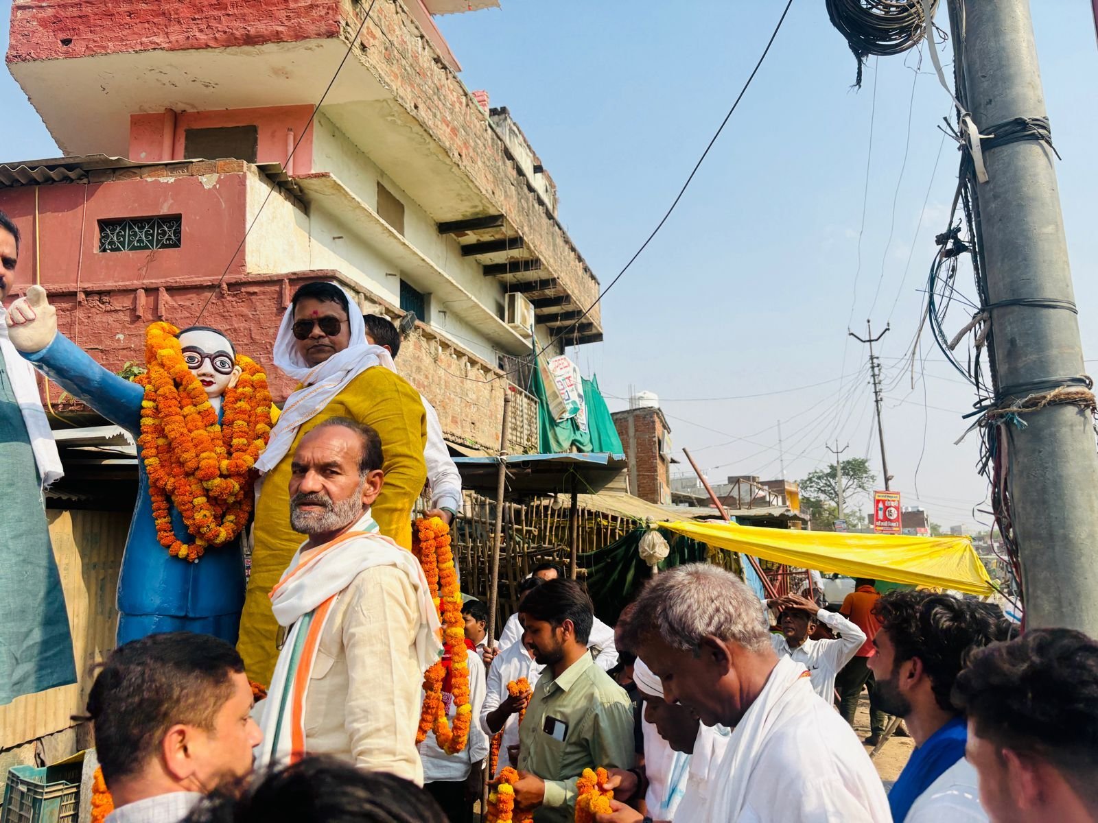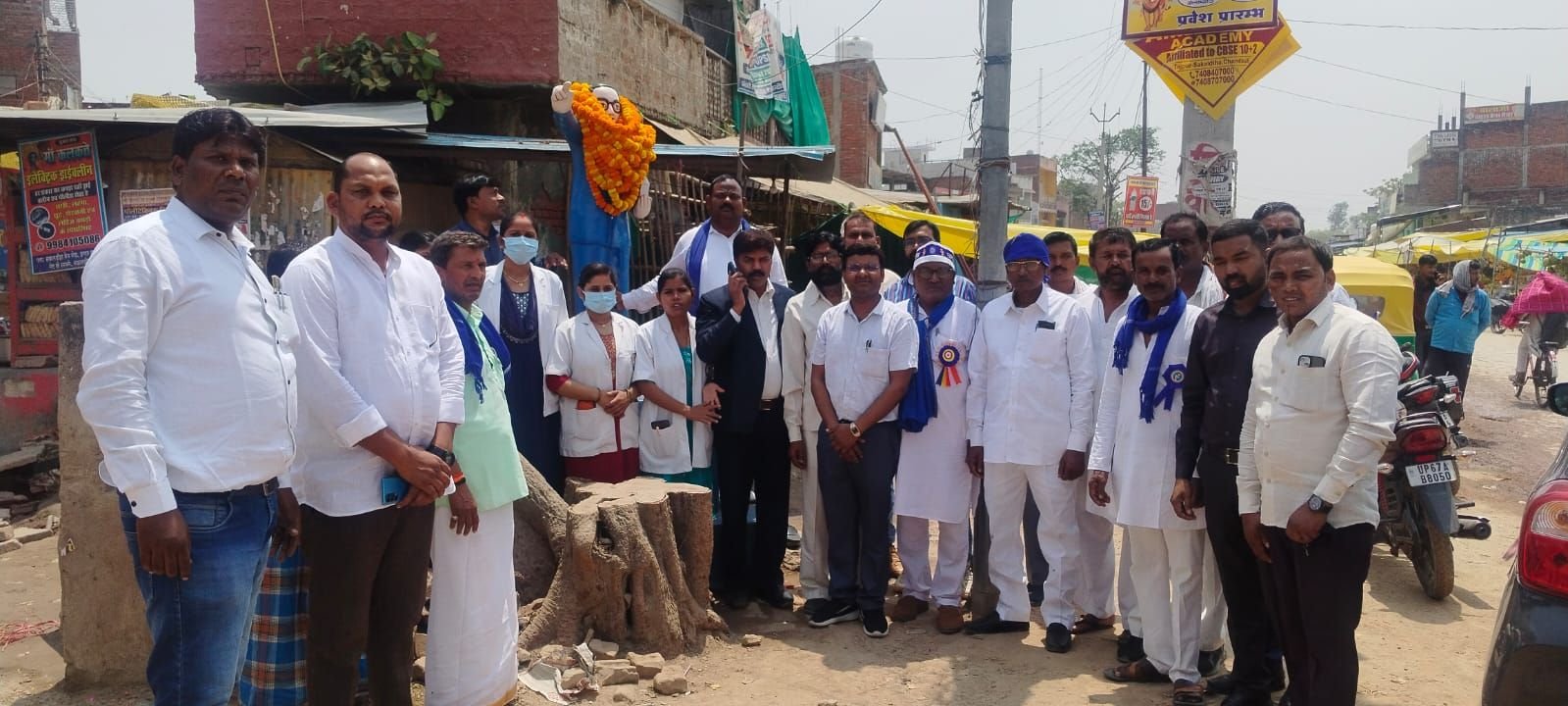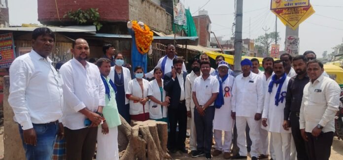 बाबा साहब के मूर्ति पर माल्यपर्ण करते हुए विभिन्न समाज के लोग
