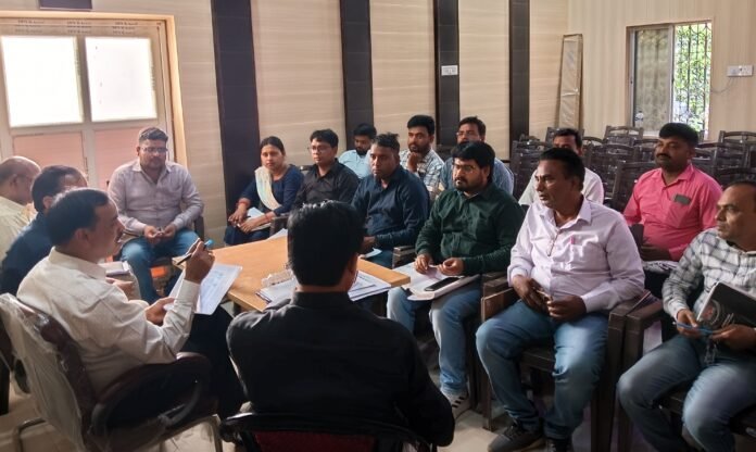 डीपीआरओ नीरज सिन्हा ब्लॉक मुख्यालय पर सचिवों के साथ समीक्षा करते हुए