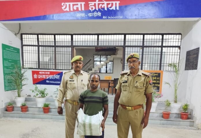 चन्दौली। पुलिस अधीक्षक आदित्य लांग्हे द्वारा अवैध शराब/ गोतस्करों के विरूद्ध चलाये जा रहे अभियान के क्रम में दिगम्बर कुशवाहा,अपर पुलिस अधीक्षक आपरेशन व क्षेत्राधिकारी चकिया के कुशल पर्यवेक्षण में थानाध्यक्ष इलिया अरुण प्रताप सिंह के निर्देशन में उ0नि0 श्री प्रकाश यादव द्वारा अपने हमराही के साथ शिनवार को एक अभियुक्त द्वारा एक सफेद झोले में 55 अदद टेट्रा पैंक ब्ल्यू लाइम देशी शराब प्रति पैक 200 ml अवैध तरीके से बेचने हेतु बिहार राज्य ले जाया जा रहा था कि काली माता मंन्दिर तिराहा बहद ग्राम बरियारपुर से पकड लिया गया।जिसके सम्बन्ध में थाना स्थानीय पर मु0अ0सं0 25/2025 धारा 60 आबकारी अधिनियम में पंजीकृत होकर आवश्यक विधिक कार्यवाही की जा रही है।