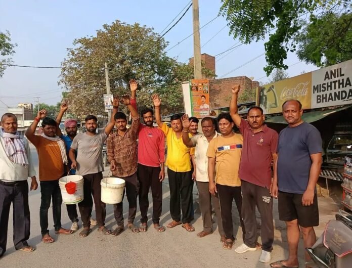 पेयजल की समस्या को लेकर विरोध प्रदर्शन करते हुए कस्बा के दुकानदार