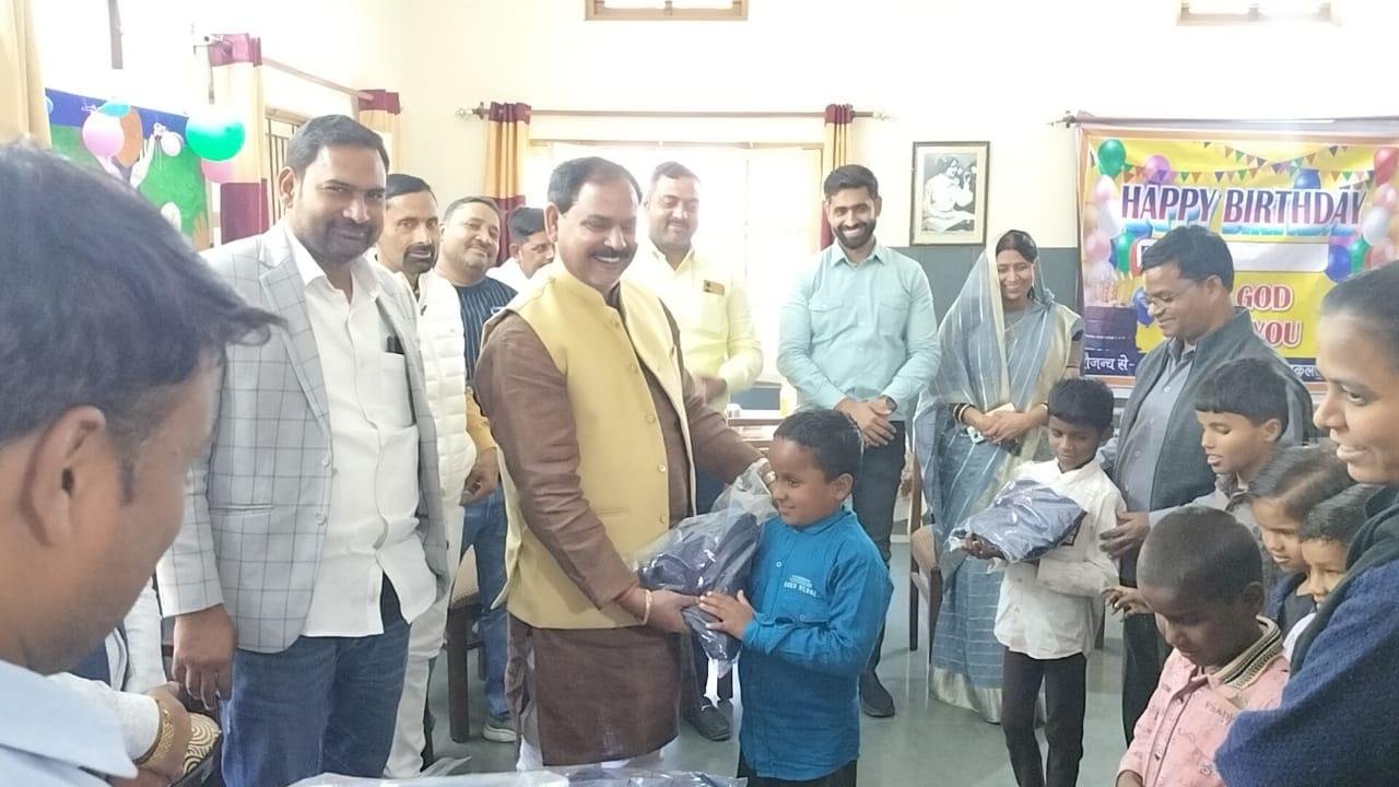 दृष्टिवाधित बच्चों को ब्लॉक प्रमुख ने दिया टै्रक सूट