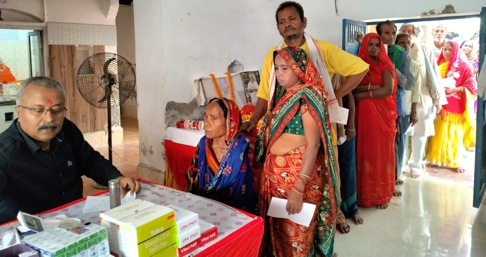 सर्वेश्वरी समूह की ओर से ताजपुर स्थित आदि आश्रम में चिकित्सा शिविर में जांच करते हुए चिकित्सक