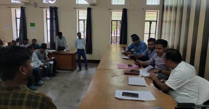 एसडीएम कुंदन राज कपूर विभागीय अधिकारियों के साथ समीक्षा करते हुए