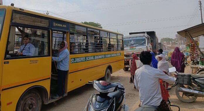 सकलडीहा राजवाहा के समीप लगा भीषण जाम