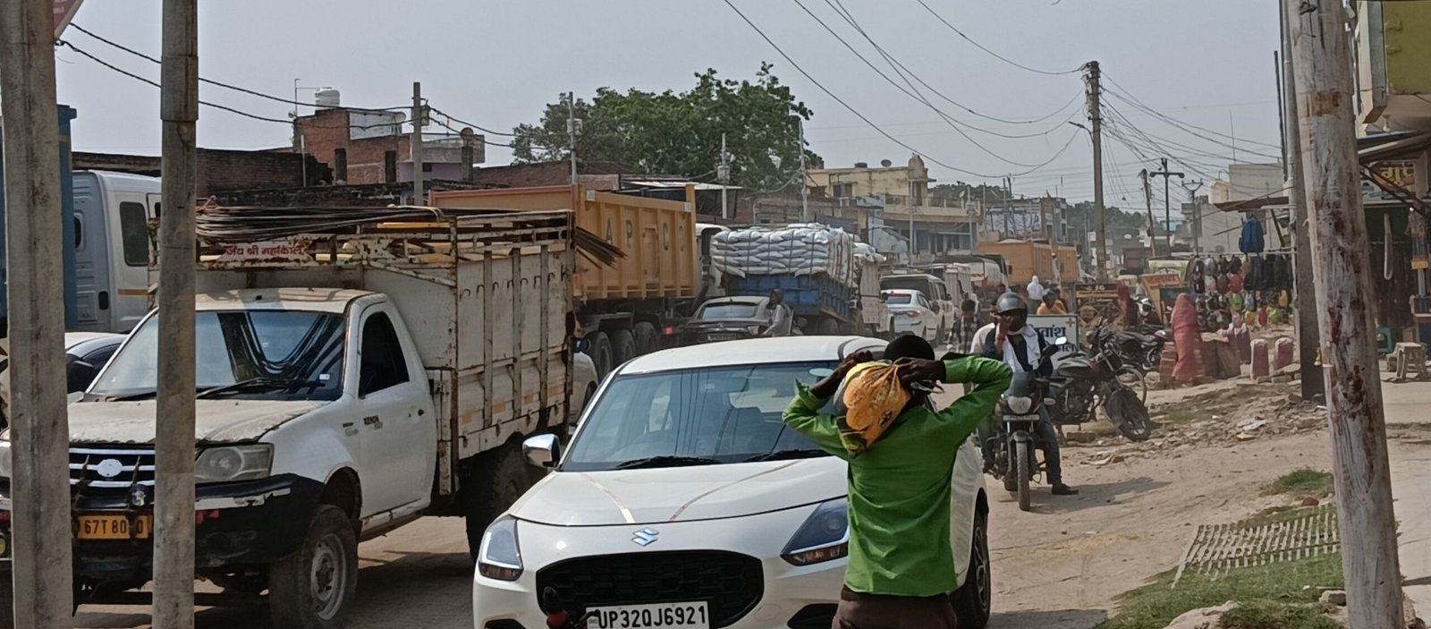 सकलडीहा राजवाहा के समीप लगा भीषण जाम
