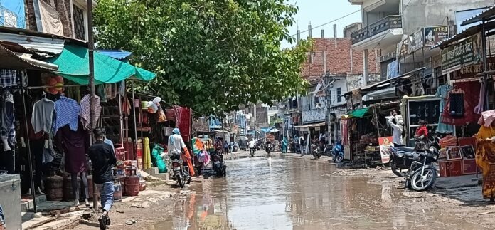 सकलडीहा इंटर कॉलेज गेट के समीप सड़क झील में तब्दील