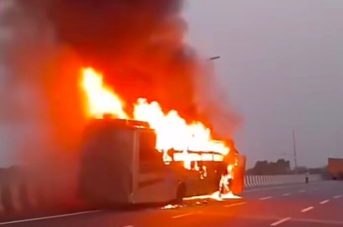 चलती बस में लगी आग 5 जिंदा जले, पिता के सामने बेटा बेटी की मौत