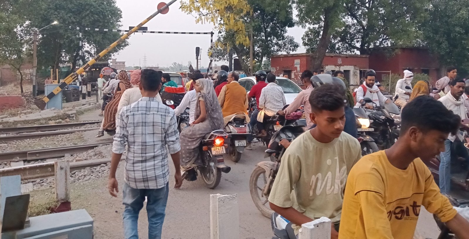 भोजापुर रेलवे क्रासिंग पर लगा भीषण जाम रेलकर्मी परेशान