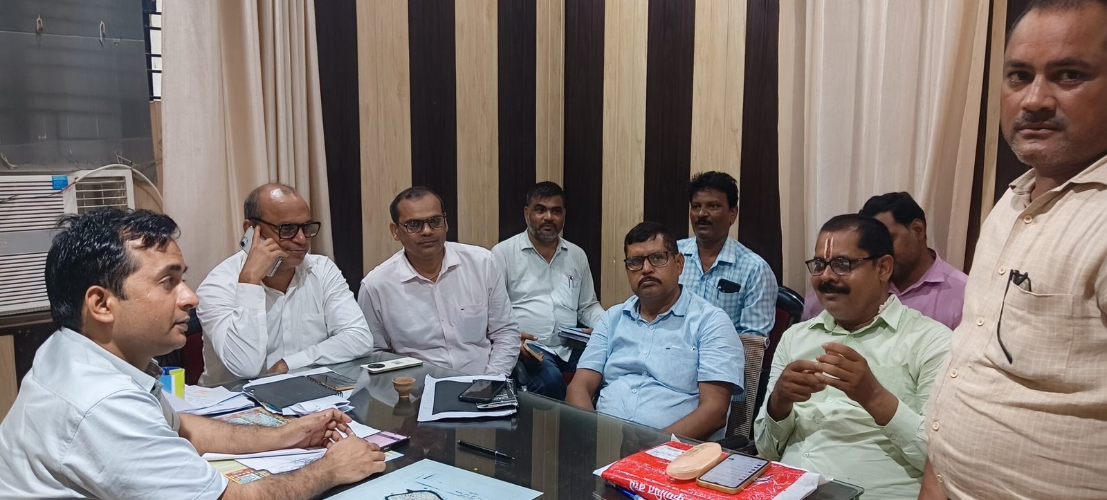 नवनियुक्त तहसीलदार संदीप श्रीवास्तव नायब तहसीलदार और कानूनगों के साथ समीक्षा करते हुए