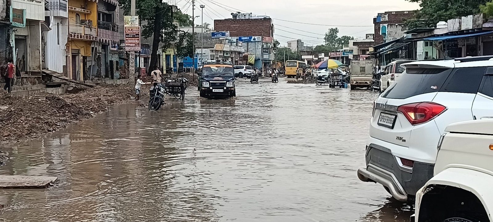 फोर लेन सड़क निर्माण कराने वाली कार्यदायी संस्था की ओर से नाला निर्माण को लेकर कच्छप गति से कार्य किये जाने के कारण दुकानों के सामने बने नाला होने के बाद भी दुकानों के सामने जलभरॉव की स्थिती है। पटरी व्यवसाई सब्जी और फल विक्रेता जलभरॉव को लेकर परेशान दिखे।