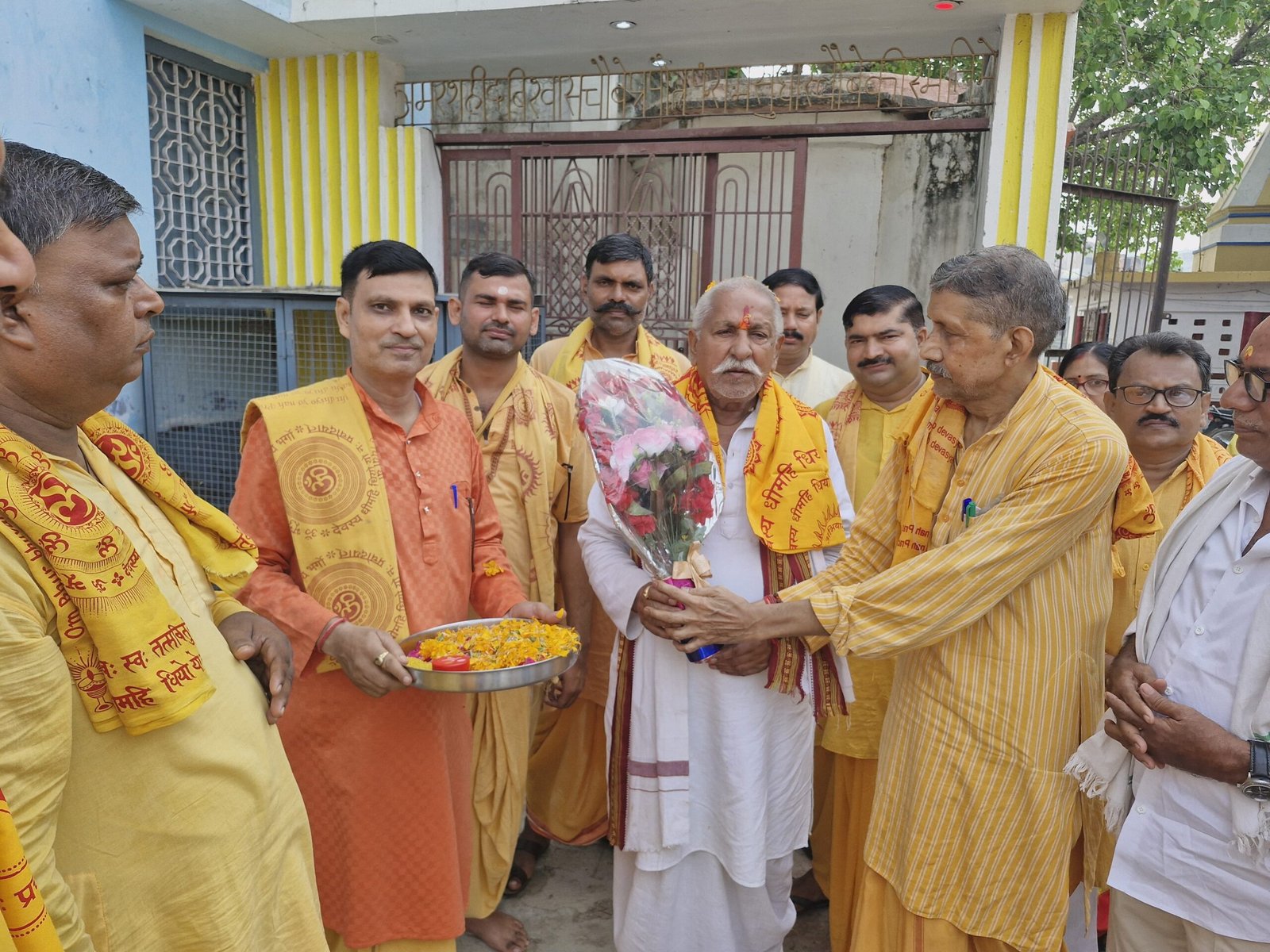 गायत्री परिवार की ओर से मुख्य अतिथि राजेन्द्रप्रताप सिंह को सम्मानित करते हुए पदाधिकारी
