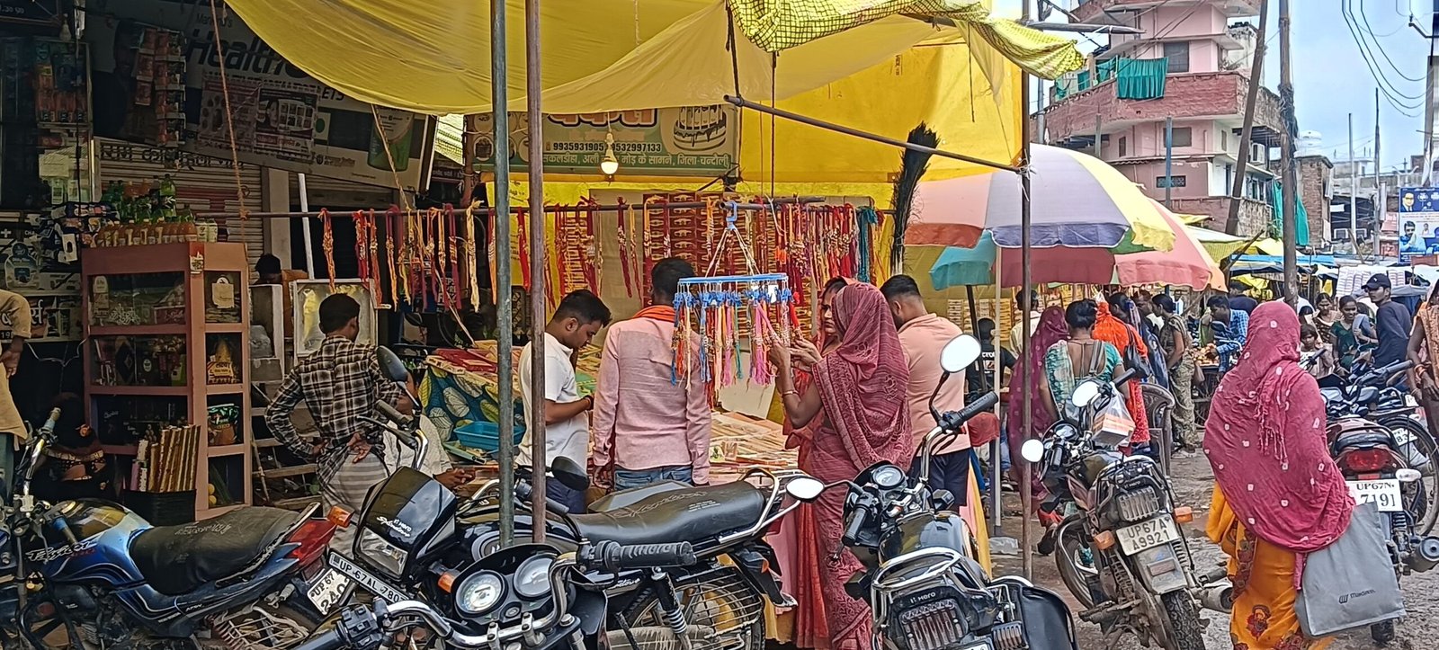राखी की खरीदारी की लिये उमड़ी कस्बा में महिलाओं की भीड़