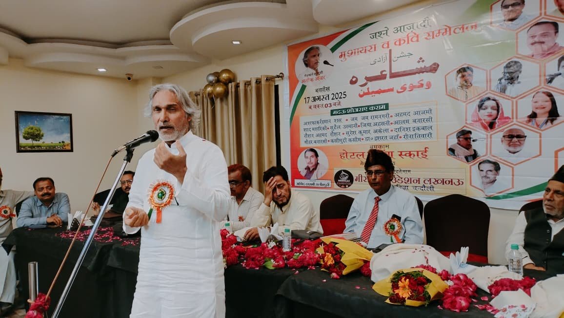 कार्यक्रम के मुख्य अतिथि अंतरराष्ट्रीय ख्याति प्राप्त शायर अदीब आतीक़ अंज़र (दोहा क़तर) की उपस्थिति ने मुशायरा और कवि सम्मेलन को अंतरराष्ट्रीय स्तर का बना दिया । विशिष्ट अतिथि के तौर पर उपस्थित प्रो नसीम अहमद पूर्व विभाग अध्यक्ष उर्दू काशी हिंदू विश्वविद्यालय ने स्वागत भाषण देते हुए स्वतंत्रता आंदोलन के संक्षिप्त इतिहास पर प्रकाश डाला । उन्होंने कहा कि तिरंगा भारत का पहचान ही नही हम सभी भारतीयों का सम्मान है। इस अवसर पर उनकी दो प्रमुख पुस्तकों इंतखाब ए ग़ज़लियत ए सौदा, मुसहफ़फ़ी का दीवान ए हशतुम और मसानवी बहररात मोहब्बत का विमोचन भी मुख्य अतिथि अति कंजर और अध्यक्ष आबिद हाशमी के हाथों किया गया। मुशायरा एवं कवि सम्मेलन में मुख्य रूप से स्वतंत्रता आंदोलन के वीर सपूतों के बलिदानों को याद करते हुए वर्तमान राजनीतिक एवं सामाजिक परिस्थितियों एवं हिंदू मुस्लिम एकता पर शायरी और कविताएं प्रस्तुत की गयी।