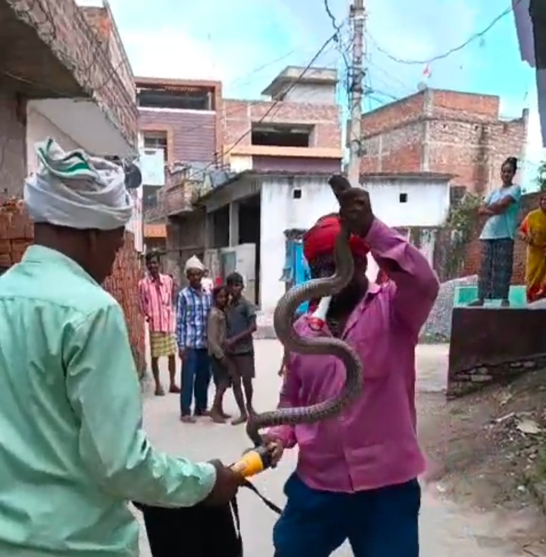 नाग नागिन को निकालता सपेरा