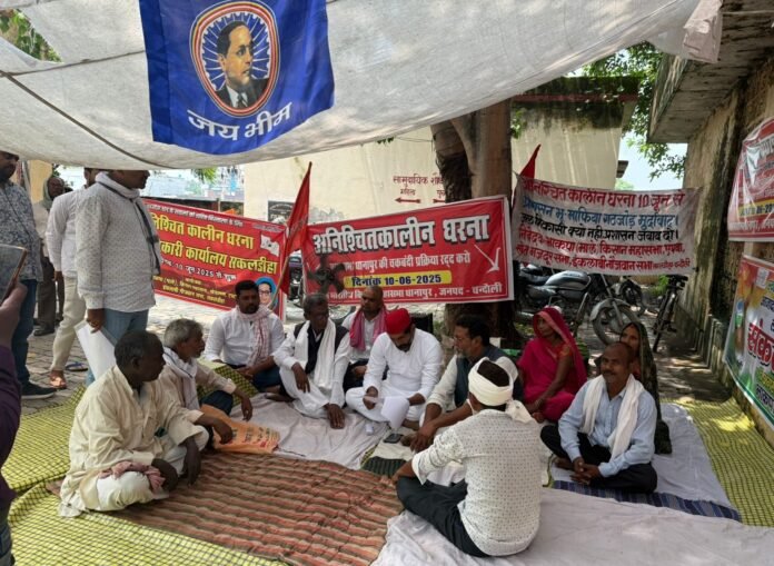 सकलडीहा। भाकपा-माले और अखिल भारतीय किसान महासभा के नेतृत्व में बीते 78 दिनों से तहसील मुख्यालय पर अनिश्चित कालीन धरना प्रदर्शन मंगलवार को भी जारी रहा। समाजवादी पार्टी के राष्ट्रीय प्रवक्ता मनोज सिंह काका धरना स्थल पर पहुंचकर समर्थन किया। तहसील स्तरीय अधिकारियों की ओर से समस्या को लेकर मौन रहने पर आलोचना किया।