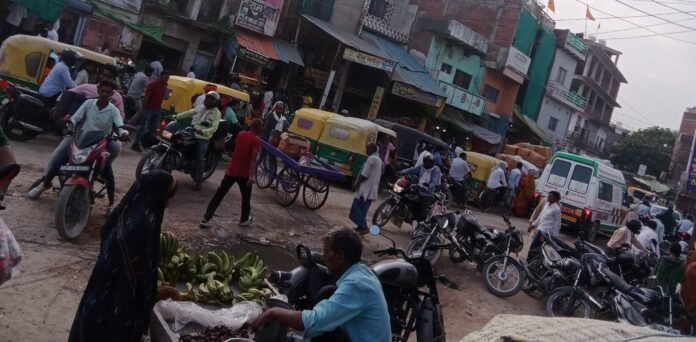 सकलडीहा में जाम में परेशान पैदल राहगीर और वाहन स्वामी