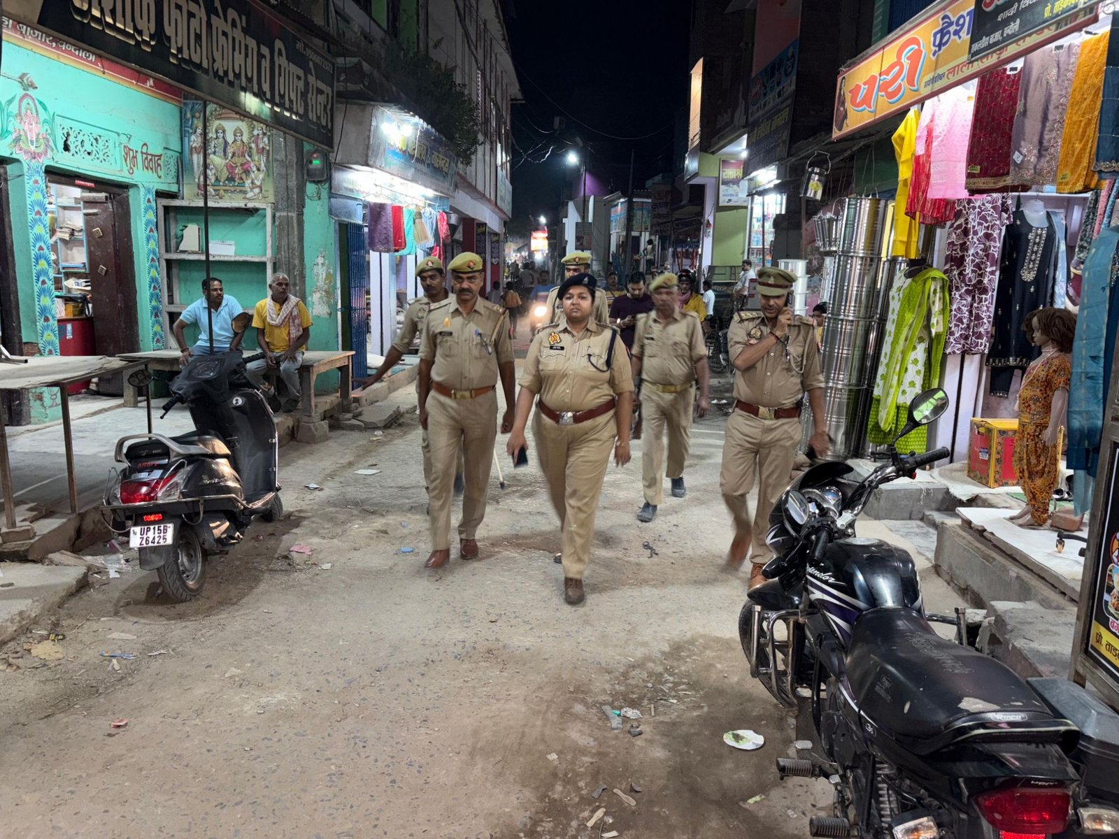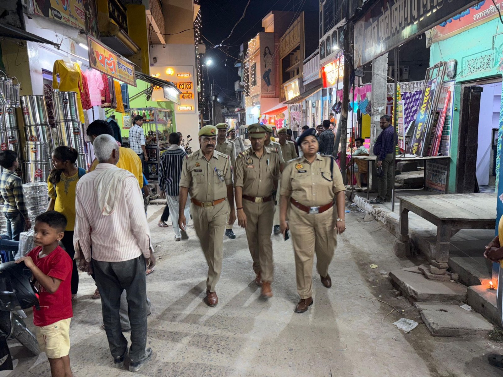 सकलडीहा कस्बा में पुलिस फोर्स के साथ धनतेरस पर सीओ स्नेहा तिवारी और कोतवाल