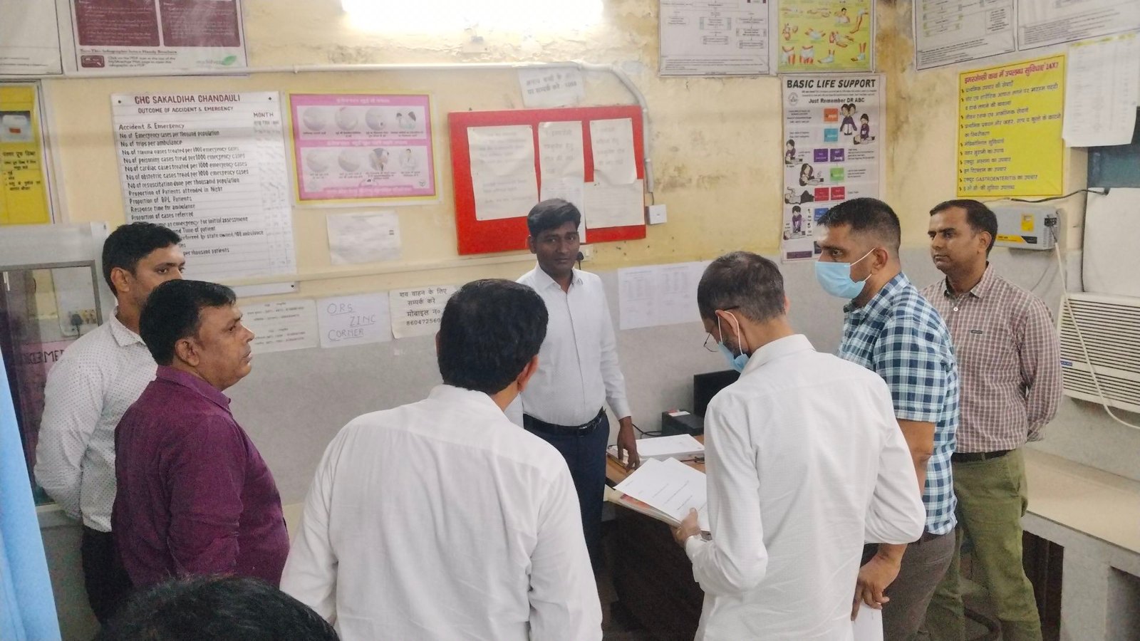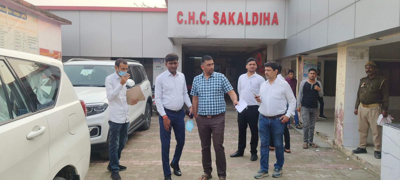अपर जिलाधिकारी राजेश कुमार सकलडीहा सीएचसी का निरीक्षण करते हुए साथ में चिकित्साधिकारी