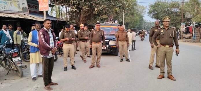 सकलडीहा सघन तिराहे पर वाहनों की जांच पड़ताल करते हुए कोतवाली पुलिस