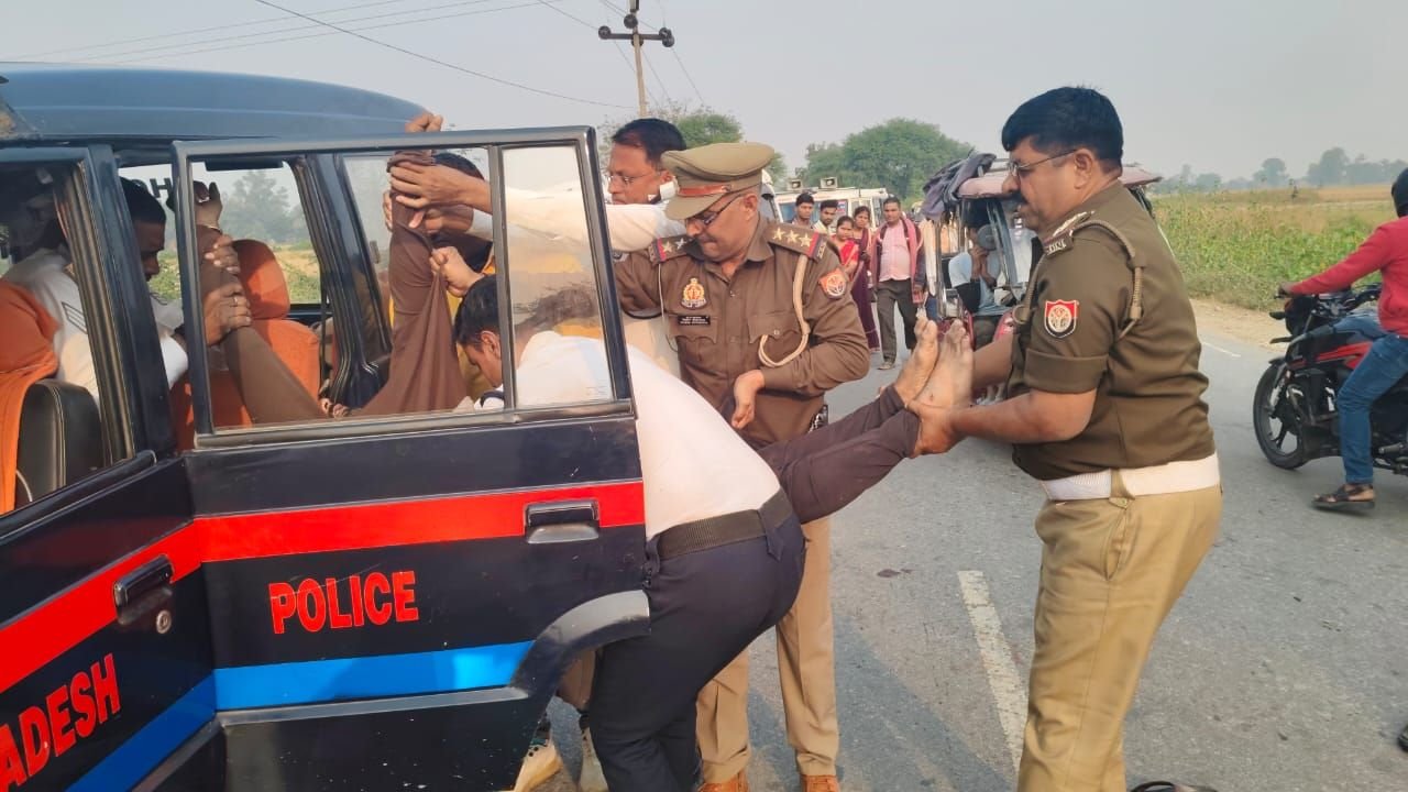 घायल को सीएचसी ले जाते सकलडीहा कोतवाल आशीष श्रीवास्तव