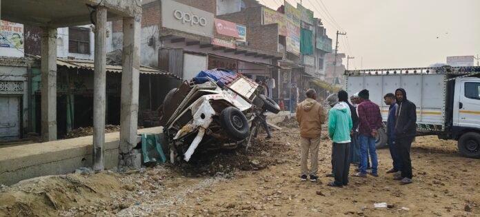 सकलडीहा अलीनगर तिराहा पर पलटी पीकअप