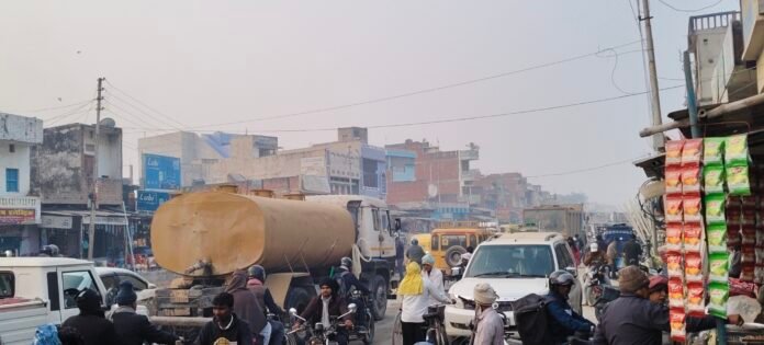 सकलडीहा अलीनगर तिराहा बंद होने से वनवे मार्ग होने से लगा वाहनों की कतार
