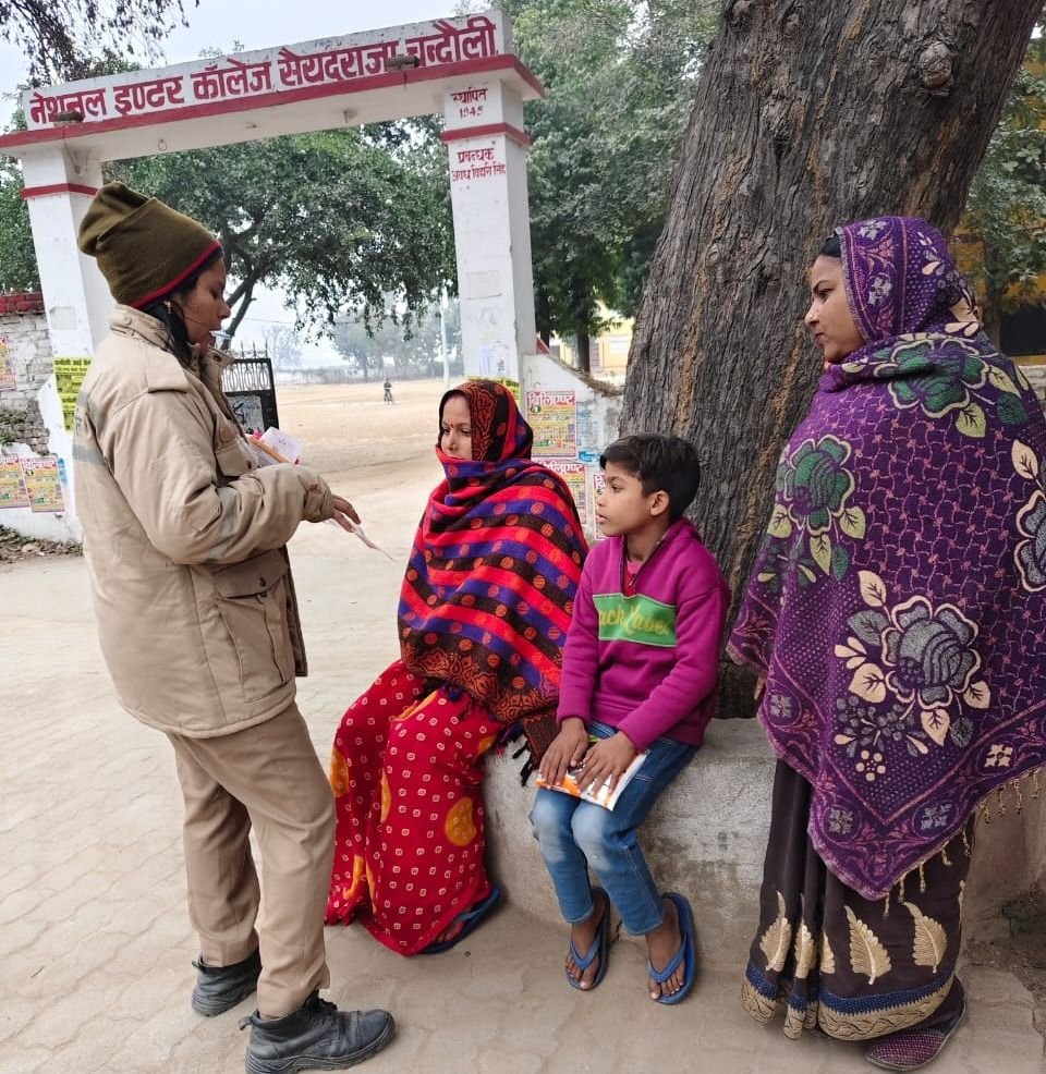 चन्दौली पुलिस अधीक्षक के निर्देशन में जनपद के समस्त थानों के मिशन शक्ति केन्द्र पर नियुक्त पुलिस कर्मियों द्वारा “मिशन शक्ति” फेज-5.0 के तहत महिलाओं एवं बालिकाओं की सुरक्षा, सम्मान और स्वावलम्बन हेतु जागरूक किया गया। उत्तर प्रदेश शासन की मंशा के अनुरूप पुलिस अधीक्षक चंदौली आदित्य लांग्हे के निर्देशन में जनपद के समस्त थानों द्वारा “मिशन शक्ति” विशेष अभियान (फेज-5.0) के तहत व्यापक कार्यक्रमों का आयोजन किया गया। यह अभियान मुख्य रूप से कम्युनिटी पुलिसिंग एवं महिला सशक्तिकरण पर केंद्रित है, जिसका उद्देश्य महिलाओं एवं बालिकाओं को सुरक्षा, सम्मान और स्वावलम्बन प्रदान करना है।मिशन शक्ति अभियान के इस चरण में चंदौली पुलिस द्वारा महिलाओं और बालिकाओं को सशक्त एवं सुरक्षित वातावरण देने के लिए निम्नलिखित प्रयास किए जा रहे है।जनजागरूकता कार्यक्रम जनपद के समस्त थानों की एंटीरोमियो टीम द्वारा सक्रियता दिखाई गई। स्कूलों, कॉलेजों, बाजारों, कस्बों और अत्यधिक भीड़-भाड़ वाले स्थानों पर सघन जागरूकता अभियान चलाया गया। महिलाओं/बालिकाओं को उनके अधिकारों, पुलिस सहायता सेवाओं (जैसे डायल 112, महिला हेल्पलाइन 1090, ट्वीट/वॉट्सएप के माध्यम से) और आत्मरक्षा के उपायों के बारे में जागरूक किया गया।व महिला संबंधित समस्याओं का निस्तारण ग्रामीण क्षेत्रों और अन्य सार्वजनिक स्थानों पर जागरूकता गोष्ठियों का आयोजन किया गया। इन गोष्ठियों में न केवल जागरूकता फैलाई गई, बल्कि महिला संबंधित समस्याओं को सुनकर उनके तत्काल और प्रभावी निस्तारण के संबंध में भी कार्रवाई की गई।इसी के साथ सामुदायिक जुड़ाव (कम्युनिटी पुलिसिंग) अभियान के तहत पुलिस ने स्थानीय समुदाय, विशेषकर महिलाओं और बालिकाओं, के साथ सीधा जुड़ाव स्थापित करने पर ज़ोर दिया ताकि पुलिस-जनता के बीच विश्वास को और मजबूत किया जा सके।विभिन्न हेल्प लाइन नम्बरों, साइबर सुरक्षा व कानूनी प्रावधानों जैसे-वूमेन पावर लाइन-1090, पुलिस आपातकालीन सेवा-112, महिला हेल्पलाइन-181, मुख्यमंत्री हेल्पलाइन-1076, चाइल्ड लाइन-1098, एम्बुलेंस सेवा-108, स्वास्थ्य सेवा-102, साइबर क्राइम हेल्पलाइन-1930 आदि के सम्बन्ध में पम्पलेट वितरण कर जागरूक किया गया।चन्दौली पुलिस का संदेश महिला एवं बालिकाओं की सुरक्षा सम्मान और स्वावलम्बन सुनिश्चित करना हमारी सर्वोच्च प्राथमिकता है। मिशन शक्ति’ फेज-5.0 इसी दिशा में एक महत्वपूर्ण कदम है। हमारा निरंतर प्रयास है कि जनपद में एक ऐसा वातावरण तैयार किया जाए जहाँ हर महिला और बालिका स्वयं को पूरी तरह से सुरक्षित और निर्भीक महसूस करे। एंटीरोमियो टीम एवं समस्त थानों को निर्देश दिए गए हैं कि वे जनता से जुड़कर समस्याओं का त्वरित समाधान करें। चंदौली पुलिस निरंत