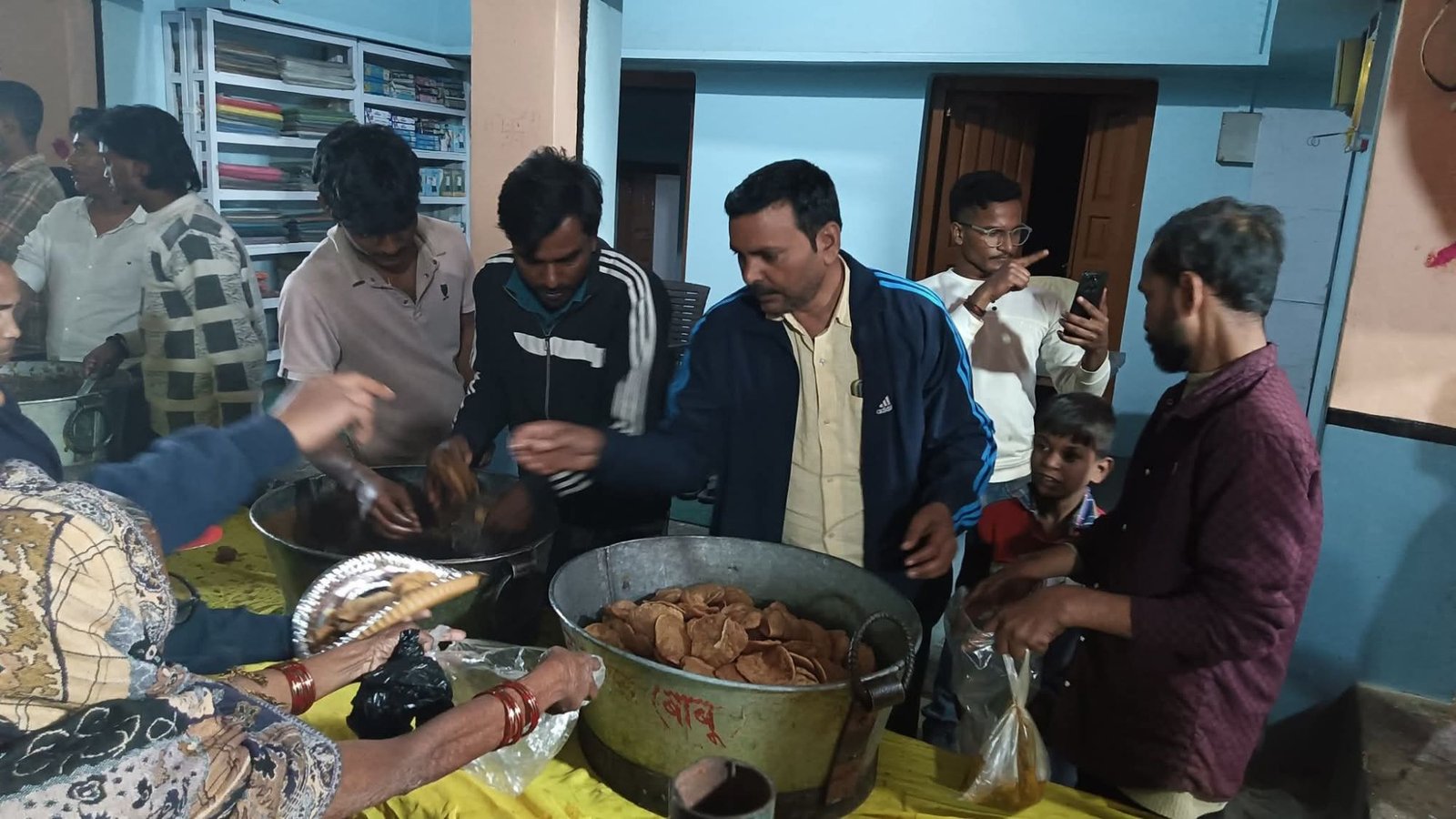 सकलडीहा में भंडारा में प्रसाद ग्रहण करते हुए भक्तजन