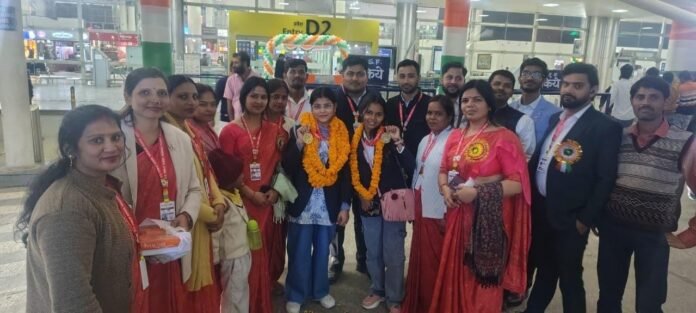 दिल्ली में विजेता टीम के साथ सुहानी राजभर मेडल दिखाते हुए