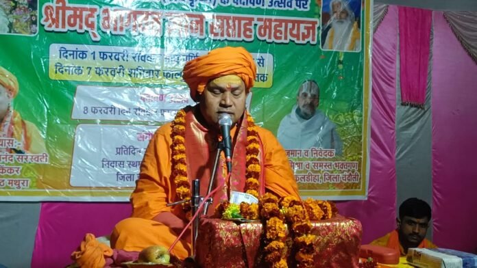 श्रीमद्भागवत कथा का वर्णन करते हुए मथुरा के भागवत किंकर स्वामी लोकेश आनंद जी महाराज