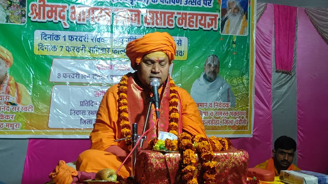 कथा के प्रथम दिन गांव में भव्य शोभायात्रा निकाली गई। जिसमें बड़ी संख्या में श्रद्धालु शामिल हुए। शोभायात्रा के पश्चात विधिवत रूप से श्रीमद्भागवत कथा का शुभारंभ हुआ। कथावाचक किंकर स्वामी लोकेश आनंद जी महाराज ने बताया कि यह कथा न केवल भक्ति का मार्ग दिखाती है। बल्कि जीवन को सही दिशा देने का माध्यम भी है। उन्होंने कहा कि नारद मुनि ने भक्ति मैया के दोनों पुत्र ज्ञान और वैराग्य को पुनः युवा करने के लिए श्रीमद्भागवत का श्रवण कराया था। इसी से स्पष्ट होता है कि भागवत कथा का श्रवण मनुष्य के जीवन से अज्ञान, मोह और विकार को दूर करता है तथा भक्ति, ज्ञान और वैराग्य का संचार करता है। महाराज श्री ने भागवत की महत्ता बताते हुए कहा कि इसके श्रवण मात्र से ही भक्तों का कल्याण संभव है। भागवत कथा जीवन के हर पहलू में सकारात्मक परिवर्तन लाने की शक्ति रखती है और मनुष्य को ईश्वर के निकट ले जाती है। यह श्रीमद्भागवत कथा सात फरवरी तक प्रतिदिन आयोजित की जाएगी। इस मौके पर अनिरुद्ध मिश्रा, अरविंद मिश्रा, अश्वनी मिश्रा, रमाकांत पांडे, शशिकांत पांडे, हरी सेवक चतुर्वेदी, विजय पांडे,गोपाल तिवारी,राजीव दीक्षित (पूर्व प्रधान), संतोष पांडे, संजय पांडे, शिवपूजन पांडे,आशुतोष पांडे,सहित बड़ी संख्या में भक्तगण कथा का रसपान किया।