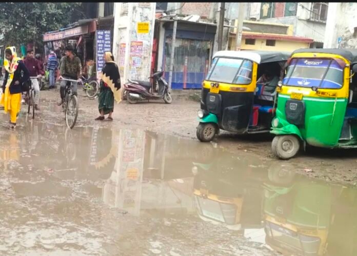 सकलडीहा कस्बा की जर्जर मार्ग पर पैदल चलना हुआ दूभर