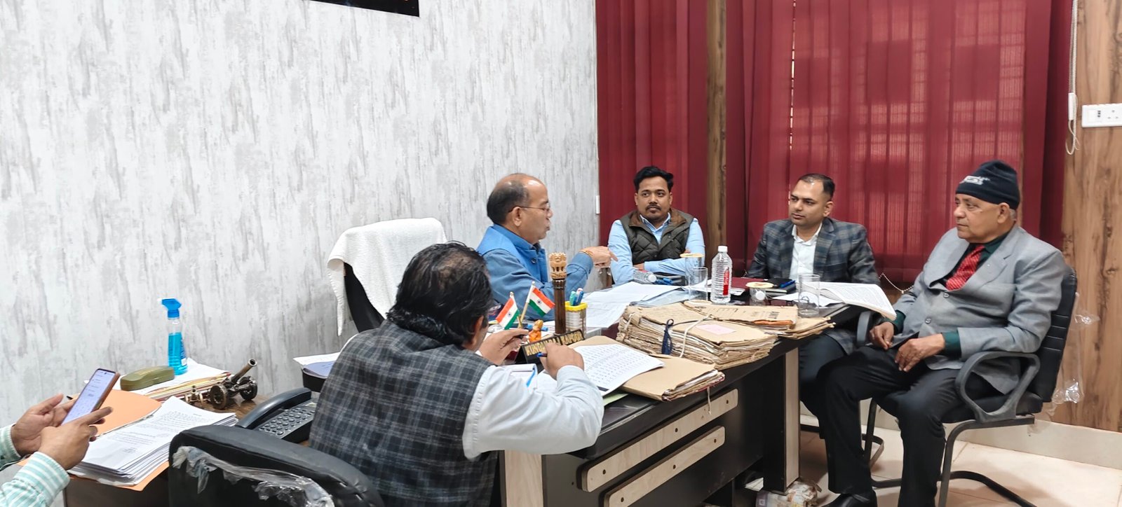 अपर जिलाधिकारी रतनवर्मा एसडीएम कार्यालय में पत्रावलियों के बारे में जानकारी लेते हुए