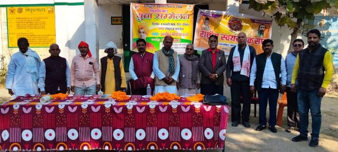 बरठी प्राथमिक विद्यालय में आरएसएस की ओर से आयोजित युवा सम्मेलन में उपस्थित अतिथि