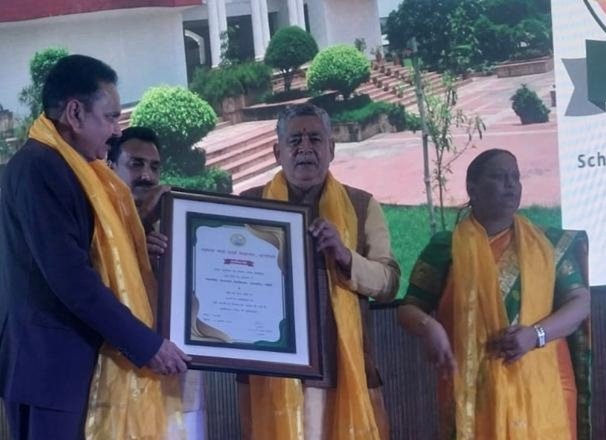 सकलडीहा पीजी कॉलेज के प्राचार्य प्रोफेसर प्रदीप कुमार पांडेय को प्रमाण पत्र देते हुए कुलपति