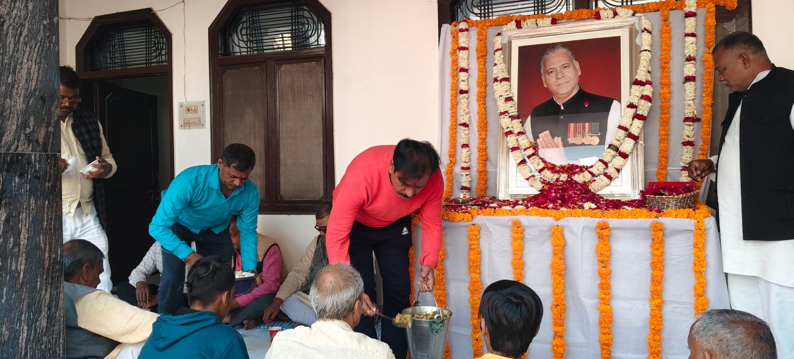 सकलडीहा। धानापुर और चिरई गांव के पूर्व विधायक स्व.रामजीत राजभर की शनिवार को नागेपुर स्थित मंत्री आवास पर 22वीं पुण्डतिथि पर श्रद्धांजली सभा का आयोजन किया गया। कैबिनेट मंत्री अनिल राजभर ने अपने पिता के पुण्डतिथि पर ब्राम्हण समाज का सम्मान के साथ भोज कराया। इस मौके पर उनके मार्ग दर्शन में जनहित और जनता का जनसेवा करने का संकल्प दोहराया। इस मौके पर काफी संख्या में लोग मौजूद रहे।