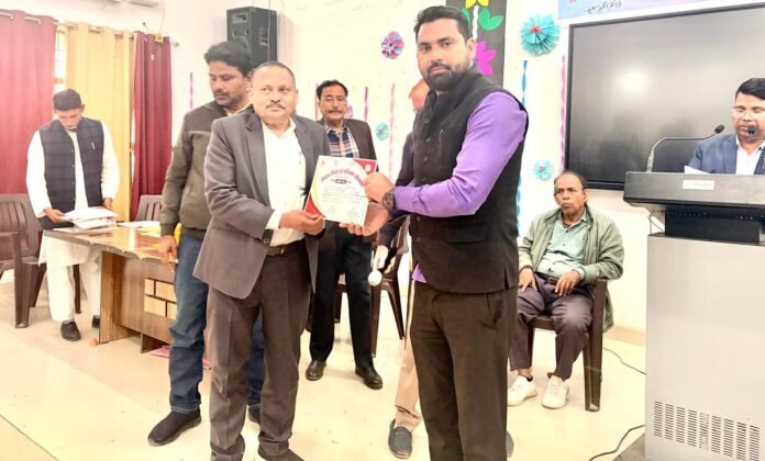 डायट प्राचार्य विकायल भारती प्रमाण पत्र देकर सम्मानित करते हुए