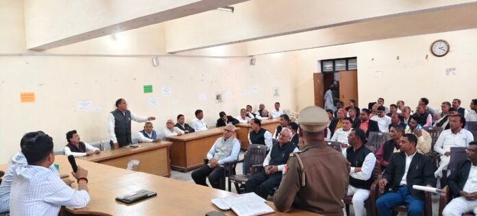 पुलिस प्रशासन और तहसील प्रशासन के बीच अधिवक्ताओं की संयुक्त बैठक तहसील सभागार में