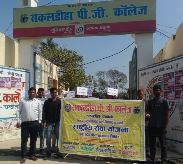 सकलडीहा। सकलडीहा पीजी कॉलेज में गुरूवार को राष्ट्रीय सेवा योजना (एनएसएस) के तहत एकदिवसीय स्वच्छता जागरूककता कार्यक्रम का आयोजन किया गया। स्वच्छता अभियान कार्यक्रम के तहत विद्यार्थियों और ग्रामीणों को स्वच्छता के प्रति जागरूकता किया गया। कार्यक्रम का शुभारम्भ महाविद्यालय परिसर में स्वच्छता अभियान चलाकर किया गया।