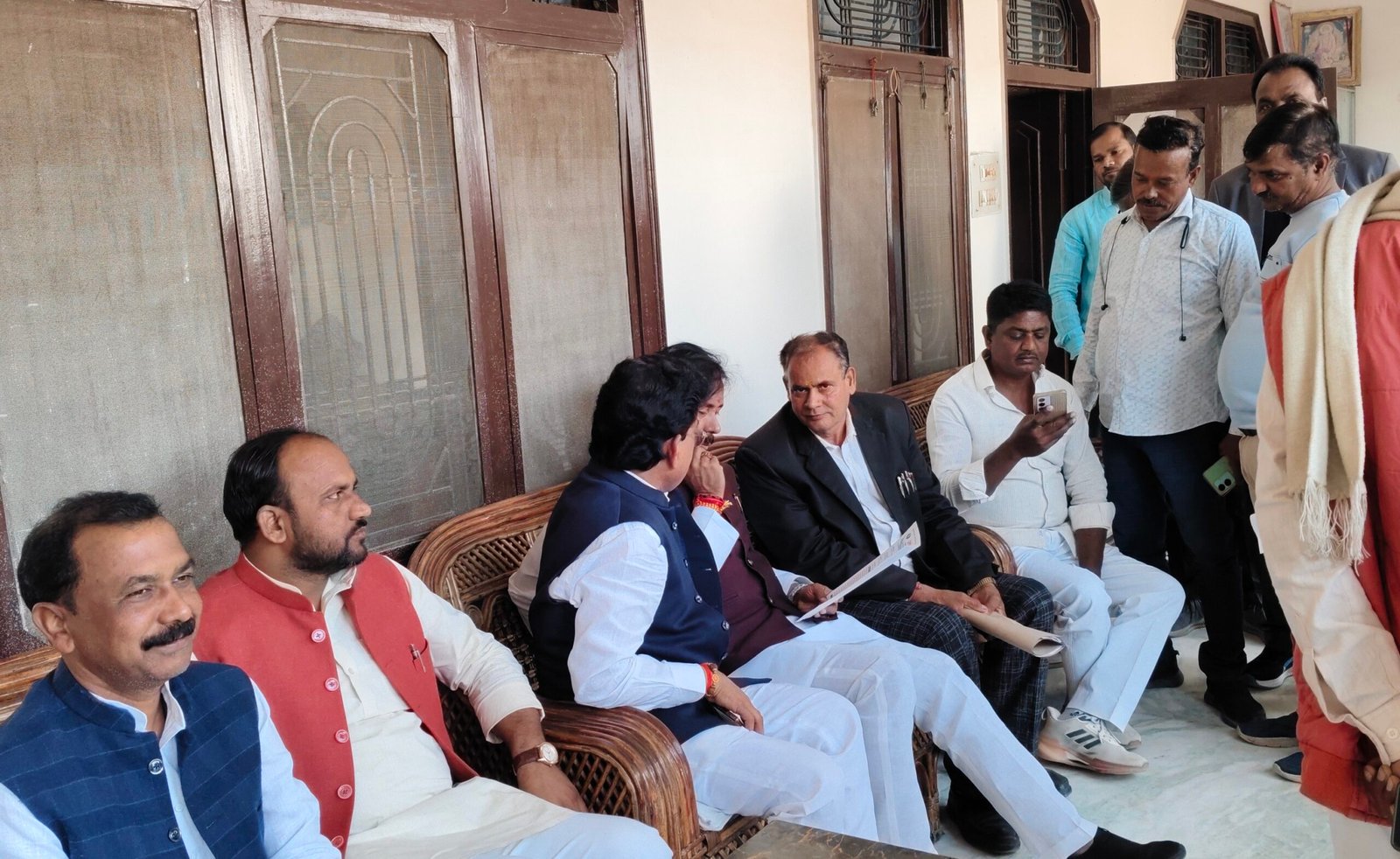 कैबिनेटमंत्री अनिल राजभर से कार्यक्रम को लेकर चर्चा करते वरिष्ठ अधिवक्ता अजय कुमार सिंह