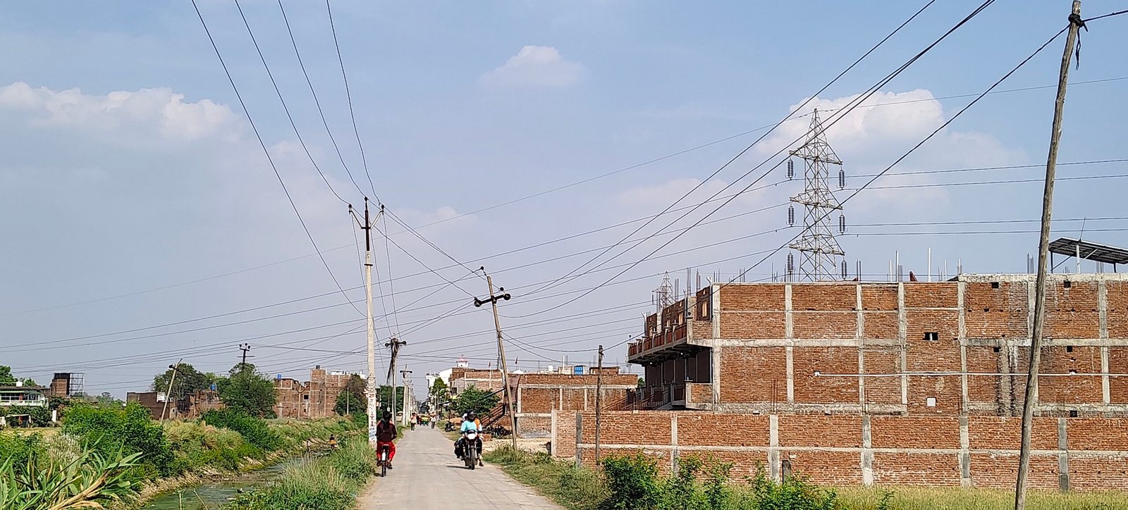 ताजपुर दुर्गापुर मार्ग पर लटकती बिजली की तार और पोल