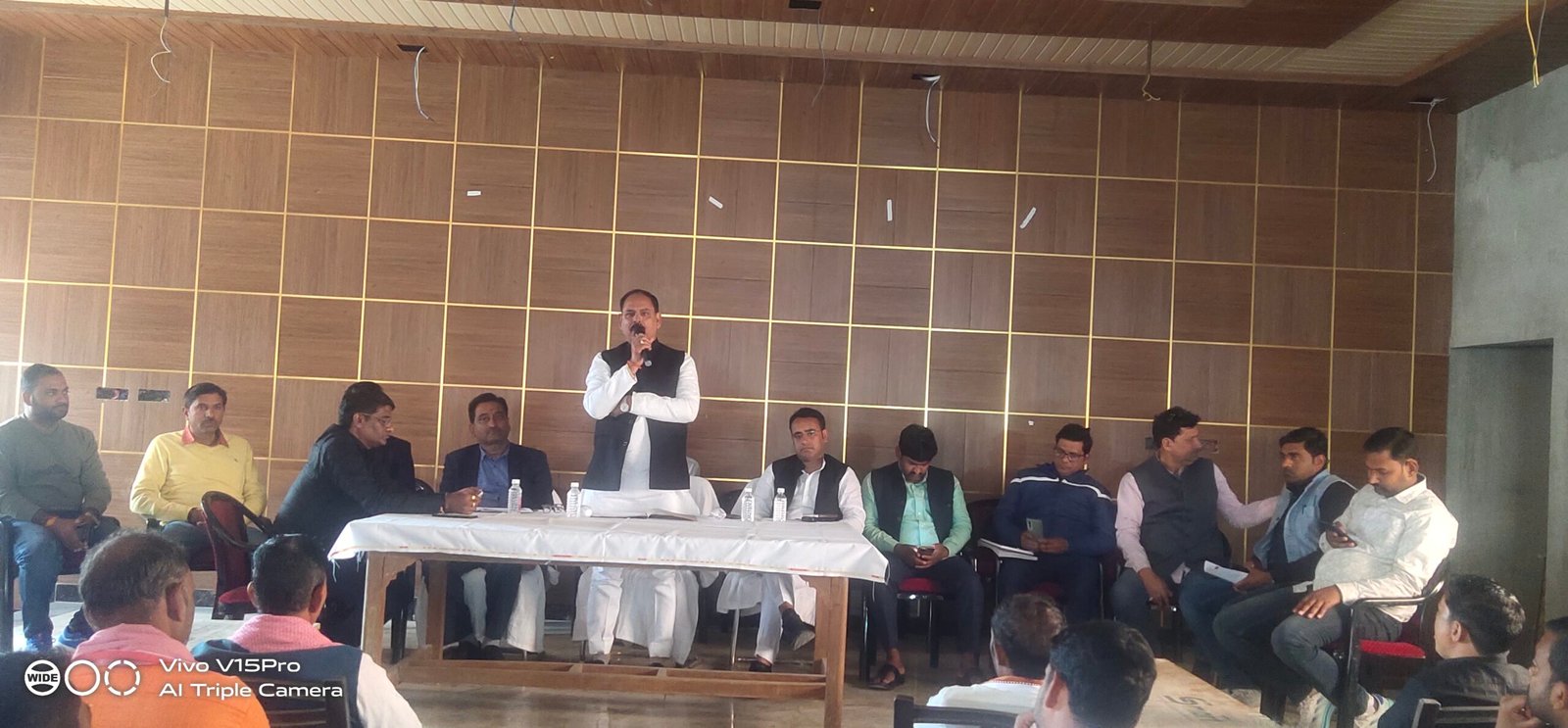 क्षेत्र पंचायत की मिनी सदन को सम्बोधित करते हुए ब्लॉक प्रमुख अवधेश कुमार सिंह और अन्य अधिकारीगण