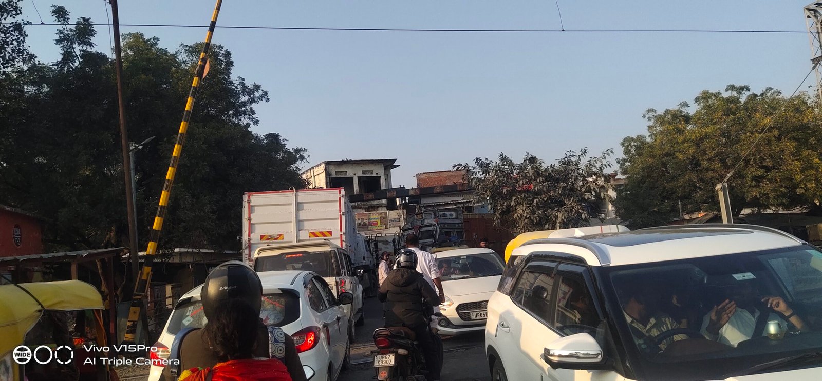 जाम के कारण काफी देर तक गेटमैन गेट बंद करने को लेकर रहा परेशान