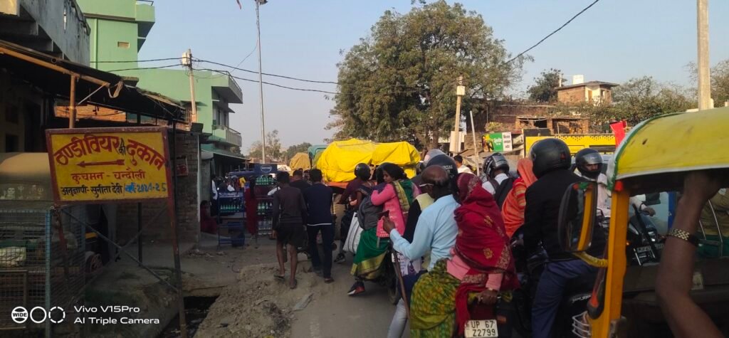 सकलडीहा। महाकुंभ का असर वाराणसी से लेकर चंदौली जनपद के रेलवे स्टेशन से लेकर शहर में दिखने को साफ मिल रहा है। जिसे लेकर पुलिस प्रशासन के लोग अलर्ट है। इसके बाद भी जाम की समस्या बनी हुई है। रविवार को शाम चार बजे करीब खुचमा रेलवे स्टेशन पर वाहनों की लम्बी कतार लग गया। गेट खुलने के बाद भी वाहनों के नहीं निकलने पर राहगीर और वाहन स्वामी परेशान रहे। ग्रामीणों ने रेलवे स्टेशन पर सुरक्षा व्यवस्था कराने की मांग किया।