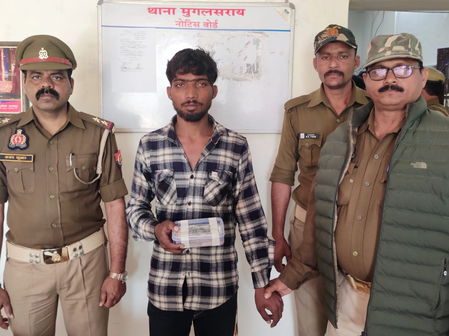 चन्दौली पुलिस अधीक्षक आदित्य लांग्हे के निर्देशानुसार अपर पुलिस अधीक्षक विनय कुमार सिह एवं क्षेत्राधिकारी पीडीडीयू नगर आशुतोष के कुशल पर्यवेक्षण में प्रभारी निरीक्षक मुगलसराय विजय बहादुर सिंह के कुशल नेतृत्व में मुगलसराय पुलिस टीम द्वारा मुखबिर की सूचना के आधार पर GRP बैरक के आगे एक पेड़ के पास सेन्ट्रल कालोनी वाले रोड के पास से साबेज अली s/o साबिर अली नि० मूल पता ग्राम वैरा फिरोपुर थाना सियाना जनपद बुलन्दशहर हाल पता ग्राम – रफीक नगर थाना कोतवाली जनपद हापुड़ उम्र 21 वर्ष गिरफ्तार किया गया है। जिसके कब्जे से दिनांक 15.02.2025 को जीआरपी कालोनी से चोरी गये सामान व रुपया 49600 बरामद किया गया। गिरफ्तारी व बरामदगी के आधार पर थाना स्थानीय द्वारा अन्य आवश्यक विधिक कार्यवाही किया जा रहा है।