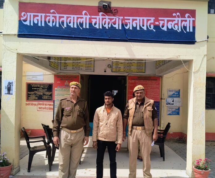 चन्दौली पुलिस अधीक्षक आदित्य लांग्हे के निर्देशन में पुलिस अधीक्षक आपरेशन अनिल कुमार यादव व क्षेत्राधिकारी चकिया राजीव सिसोदिया के कुशल पर्यवेक्षण में थानाध्यक्ष अतुल कुमार द्वारा गठित टीम द्वारा मुखबिर की सूचना के आधार पर दिनांक 27.02.25 को समय करीब 22.50 बजे थाना चकिया पर पंजीकृत मु0अ0स0 196/2024 धारा 3/5ए/5बी/8 गो.नि. अधि. व 11 पशुक्रूरता नि. अधि. व 325 बीएनएस में वांछित अभियुक्त अभिषेक चौहान पुत्र नीरज चौहान निवासी खेड़ा परसौली मितई थाना चन्दपा जनपद हाथरस को शिकारगंज पोखरा से गिरफ्तार किया गया। गिरफ्तारशुदा अभियुक्त के विरूद्ध अग्रिम विधिक कार्यवाही किया जा रहा है ।
