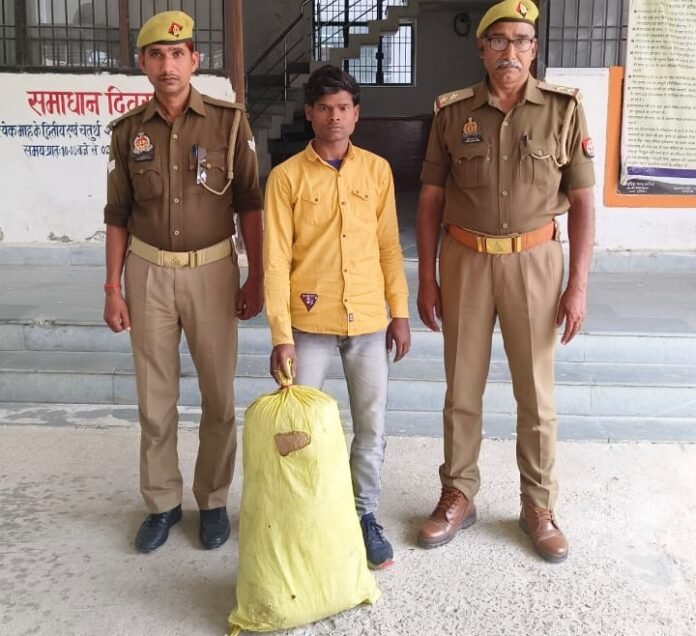 चन्दौली पुलिस अधीक्षक आदित्य लांग्हे द्वारा दिये गये मादक पदार्थ की तस्करी के विरूद्ध प्रभावी कार्यवाही हेतु चलाये जा रहे अभियान के अनुपालन के क्रम में अपर पुलिस अधीक्षक आपरेशन अनिल कुमार यादव व क्षेत्राधिकारी चकिया राजीव सिसोदिया के कुशल पर्यवेक्षण में थानाध्यक्ष इलिया प्रियंका सिंह के कुशल नेतृत्व में उ0नि0 सूरज सिंह चौकी प्रभारी कस्बा इलिया थाना इलिया मय हमराह द्वारा मुखबिर की सूचना के आधार पर शुक्रवार को सुबह लगभग 9 शिवमंदिर ग्राम माल्हद के पास से एक प्लास्टिक बोरी में से 03 बण्डल नाजायज गांजा लगभग कुल वजन 06.860 किग्रा. बरामद करते हुए एक अभियुक्त को गिरफ्तार कर लिया। गिरफ्तारी व बरामदगी के आधार पर थाना स्थानीय पर मु0अ0सं0 15/2025 धारा 8/20 NDPS Act पंजीकृत कर अन्य आवश्यक विधिक कार्यवाही प्रचलित है।